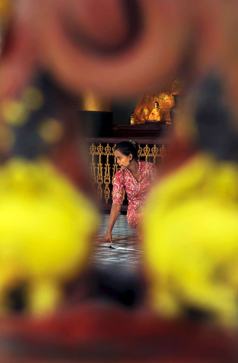 Worshipper inside Shwedagon Pagoda complex | Yangon, Myanmar | 2010